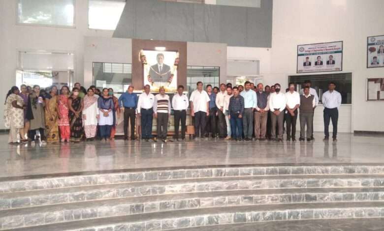 सांगोला: येथील फॅबटेक टेक्निकल कॅम्पसमध्ये फॅबटेक उद्योग समूहाचे संस्थापक अध्यक्ष स्व. बिरासाहेब रुपनर यांची जयंती साजरी करण्यात आली. संस्थेचे कॅम्पस डायरेक्टर श्री.संजय अदाटे यांच्या हस्ते स्व. बिरासाहेब रुपनर यांच्या प्रतिमेस पुष्पहार अर्पण करून विनम्र अभिवादन करण्यात आले. स्वर्गीय बिरासाहेब रुपनर यांच्या उत्तुंग कार्याविषयीची माहिती पॉलिटेक्निकचे प्राचार्य प्रा. शरद पवार यांनी उपस्थितांना दिली.यावेळी बोलताना प्राचार्य शरद पवार म्हणाले कि, स्वर्गीय बिरासाहेब रुपनर यांना अल्प आयुष्य लाभले परंतु त्यांचे संपूर्ण कार्य हे विशाल, समाजउपयोगी व प्रेरणादायी असे होते. असेच कार्य करण्याची प्रेरणा आपण त्यांच्या कडून घेतली पाहिजे. अशा या महान असामान्य कर्तृत्वास विनम्र अभिवादन.या कार्यक्रमासाठी अभियांत्रिकी महाविद्यालयाचे प्राचार्य डॉ. आर. बी. शेंडगे, फार्मसीचे प्राचार्य डॉ.संजय बैस, पॉलिटेक्निकचे प्राचार्य प्रा. शरद पवार,अकॅडमिक डीन टी एन जगताप, फॅबटेक पब्लिक स्कूल व ज्युनिअर कॉलेजचे प्राचार्य सिकंदर पाटील सर्व शाखांचे विभागप्रमुख, प्राध्यापक वर्ग तसेच शिक्षकेत्तर कर्मचारी आदी उपस्थित होते.