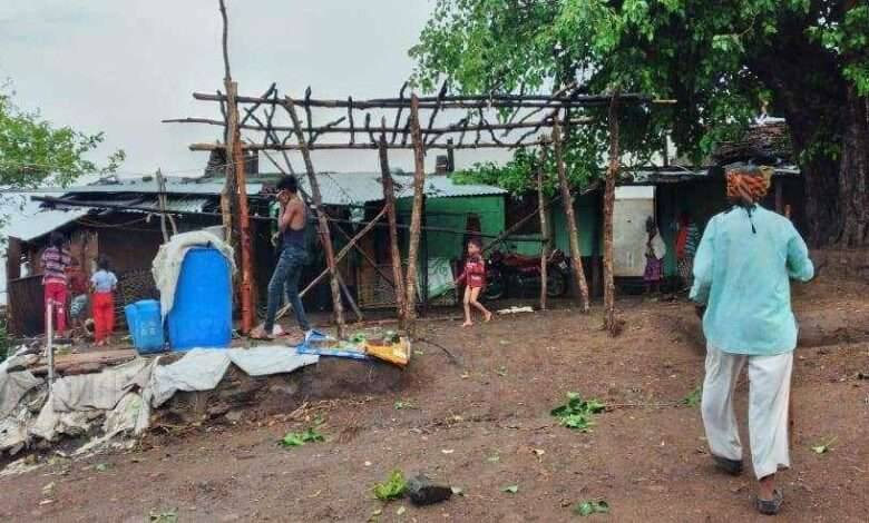 सातपुडातील मोहमांडली येथे घरावरील पत्रे उडून घरांची पडझड होऊन संसारोपयोगी वस्तूंचेही नुकसान झाले