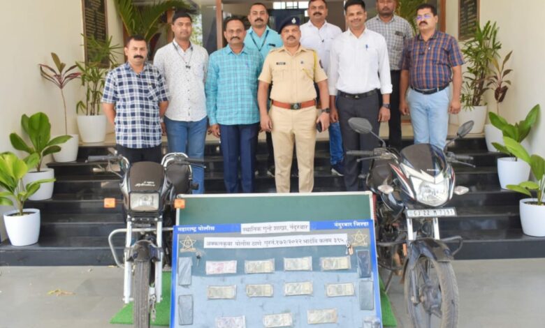 अव येथील व्यापारी श्री. महेश परमसुख तंवर वय ४५ वर्ष है दि. ०३/०४/२०२२ रोजी रात्री ०९.१५ वाजणेचे सुमारास वाण्याविहिर येथुन त्यांची बुलेट मो. सा. क्र. MH-३९ AF- ७००१ हिचेने किराणा मालाचे उधारीचे पैसे जमा करून त्यांचे राहते घरी जात होते. जुना वाण्याविहीर फाटा ते मोठी राजमोही गावाचे दरम्यान अंकलेश्वर-बु-हाणपुर महामार्गावरील पुलाजवळ त्यांचे पाठीमागून आलेल्या मोटर सायकलवरील दोन अज्ञात इसमांनी त्यांच्या हातातील लाकडी दांडक्याने त्यांना मारहाण करून त्यांचे मोटार सायकलच्या हॅन्डलला लावलेली ४,९०,०००/- रु. रोख रक्कम व उधारी वसुलीचा कागद असलेली बंग हिसकावून पळवून नेली. सदरची घटना पोलीसांना कळताच पोलीसांनी केलेल्या सुचनेप्रमाणे फिर्यादा यांनी अक्कलकुवा पोलीस ठाणे येथे दिलेल्या फिर्यादीवरून गुरनं. १७२/२०२२ भादंवि कलम ३९२, ३४ प्रमाणे गुन्हा दाखल करण्यात आला.सदरची घटना अत्यंत गंभीर असल्याने नंदुरबार जिल्ह्याचे मा. प्रभारी पोलीस अधीक्षक श्री विजय पवार यांनी स्वतः लागलीच घटनास्थळास भेट देऊन झालेल्या प्रकाराची इत्थंभूत माहीती घेऊन अक्कलकुवा पोलीस ठाणे व स्थानिक गुन्हे शाखेस गुन्हा उघडकीस आणण्याबाबत मार्गदर्शन करून सुचना दिल्या होत्या. सदर घटनेमुळे व्यापारी वर्गामध्ये प्रचंड भितीचे वातावरण तयार झाले होते. तसेच त्यांचमध्ये असंतोष