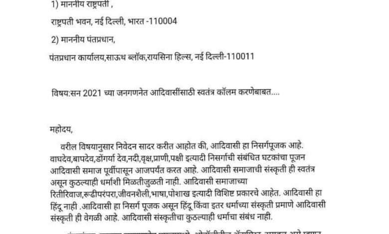 इंग्रजांच्या काळात जणगणनेत प्रपञामध्ये ओबाॅजीनीज,अॅनामिस्ट, ट्रायबल असे म्हणून आदिवासींची ओळख होती. माञ स्वतंत्र भारताच्या जनगणनेत आदिवासींचे अस्तित्व दाबले जात आहे. म्हणून सन 2021 च्या जणगणनेत आदिवासींचा स्वतंत्र काॅलम करण्यात यावा.अन्यथा आदिवासी समाज रस्त्यावर उतरून तीव्र आंदोलन छेडण्याच्या तयारीत आहे. तरी आदिवासी समाजाच्या या मागणीचा विचार करावा. अशी मागणी सुशीलकुमार पावरा कोकण विभाग प्रमुख आणि अध्यक्ष बिरसा क्रांती दल यांनी भारताचे राष्ट्रपती व पंतप्रधान यांच्या कडे केली आहे.