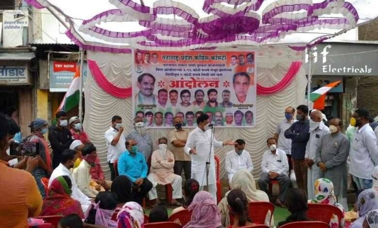 मनमाड ला महाराष्ट्र प्रदेश कॉंग्रेस कमिटी पक्षाच्या आय यु ङी पी शाॅपीग सेंटर बांधकाम बदं करा मागणी साठी आंदोलन