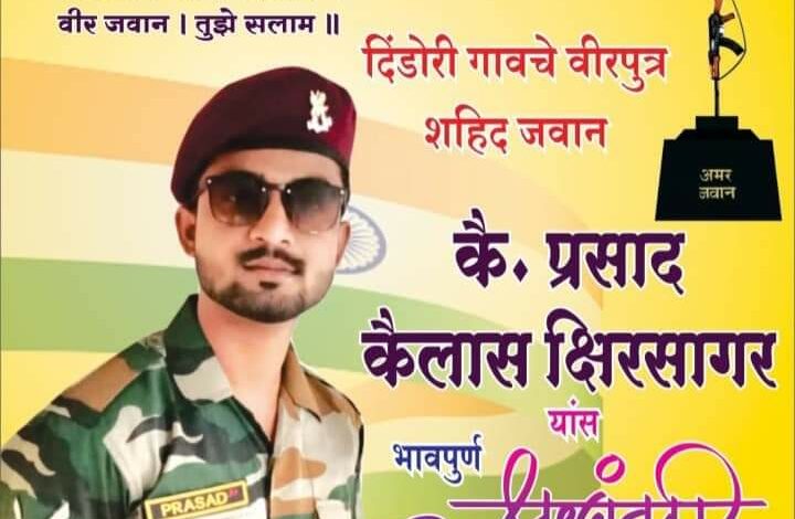 दिंडोरी-दिंडोरी येथील शहीद जवान कैलास वासी प्रसाद क्षिरसागर अनंतात विलीन