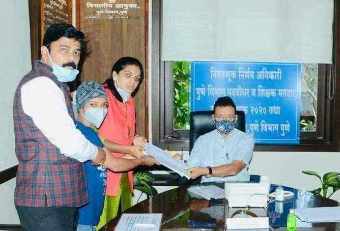 पुणे : महाराष्ट्र नवनिर्माण सेनेच्या पुणे पदवीधर मतदार संघातील अधिकृत उमेदवार रुपाली पाटील-ठोंबरे यांनी बुधवारी प्रातिनिधिक स्वरूपात एका बेरोजगार तरुणीचे पालकत्त्व स्वीकारत तिच्या हस्ते आपला उमेदवारी अर्ज दाखल केला.