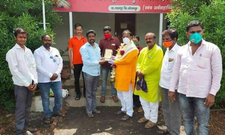 पंढरपूर तालुक्यामधील गादेगाव येथे महाराष्ट्र नवनिर्माण सेनेचे प्रदेश सरचिटणीस दिलीप बापू धोत्रे यांनी कोरोणाच्या काळात सामाजिक बांधिलकी जोपासत गोरगरीबांना वंचितांना आर्थिक मदत, त्याचबरोबर जीवनावश्यक वस्तूंची मदत केल्याबद्दल शिवरत्न ज्युनिअर कॉलेज गादेगाव. यांच्यावतीने दिलीप बापू धोत्रे यांचा सन्मान चिन्ह व मानाचा सत्कार करून सन्मानित करण्यात आले. गेले चार महिन्यापासून मनसेचे प्रदेश सरचिटणीस दिलीप बापू धोत्रे यांनी जनतेसाठी गोरगरिबांसाठी कौतुकास्पद उपक्रम राबवले आहेत .सर्वसामान्यांना कोरणाच्या महामारी मध्ये दिलासा देण्याचे काम दिलीप बापू धोत्रे व त्यांच्या सर्व टीमने केले असून त्यांच्या उल्लेखनीय कामाबद्दल त्यांचा गौरव करण्यात आला यावेळी अनिल आप्पा बागल, ग्रामपंचायत सदस्य गणेश बागल ,अजित मोरे, मनसेचे तालुकाध्यक्ष शशिकांत पाटील संस्थापक अध्यक्ष गणपत मोरे, कृष्णा मासाळ ,राजेंद्र भोसले आदी उपस्थित होते