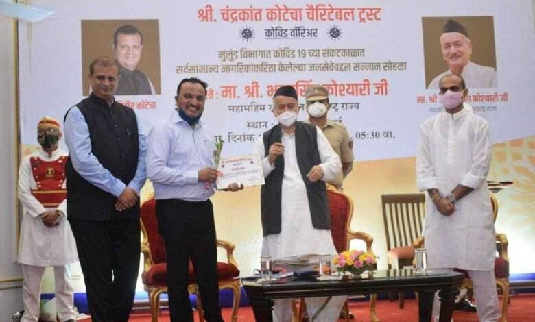 मुंबई महानगरपालिकेचे सहाय्यक अभियंता सचिन नेहरे यांचा महाराष्ट्राचे राज्यपाल भगतसिंग कोशा री चे हस्ते सन्मान..
