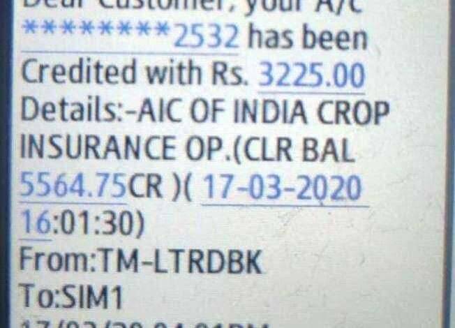 या क्रमांकाचे खाते असून या बँक खात्यावर एआयसी अर्थात अग्रीकल्चरल कंपनीने दिनांक १७ मार्च २०२० रोजी दुपारी ४ वाजून १ मिनिटाला ३२२५ रुपये रक्कम विम्यापोटी जमा झाली आहे. एवढेच नाही तर त्यांच्या नोंदणीकृत मोबाईल नंबर वर त्या संबंधी मोबाईल वर संदेश पाठवण्यात आला आहे.विमा भरूनही अनेक ठिकाणी शेतकऱ्यांना पीकविमा मिळत नाही.परंतु शेतजमीन नावावर नसतानाही विमा जमा कसं काय करण्यात आला ?याची चर्चा सुरू आहे.डिजिटल नवनव्या तंत्रज्ञानाचा वापर करून गावपातळीवर तलाठी ,मंडळ अधिकारी, बँका यांच्यामार्फत तपासण्या छाननी करूनही असा गैरप्रकार विमा कंपन्या का करत असतील ? तर असे प्रकार किती जणांच्या बाबतीत घडतात याची योग्य अशी चौकशी होणे गरजेचे आहे.