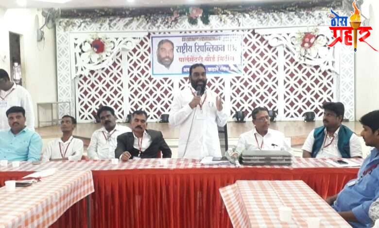 यांच्या अध्यक्षतेखाली संपन्न झाली लवकरच महाराष्ट्रात महानगरपालिका/ नगरपालिका/ जिल्हा परिषद /पंचायत समिती/ कॅन्टोन्मेंट बोर्ड/ आधी स्थानिक स्वराज्य संस्थांच्या सार्वजनिक निवडणुका होऊ घातलेल्या आहे. त्यादृष्टीने सर्वच राजकीय पक्ष आपापल्या परीने कामाला लागले आहे राष्ट्रीय रिपब्लिकन पक्षाने आपल्या पक्षाचा विस्तार महाराष्ट्रातील सर्वच जिल्ह्यात चांगल्या प्रकारे केला आहे सर्वच निवडणुका ह्या ताकदीने लढविण्याचा राष्ट्रीय रिपब्लिकन पक्षाचा निर्णय झाला आहे.