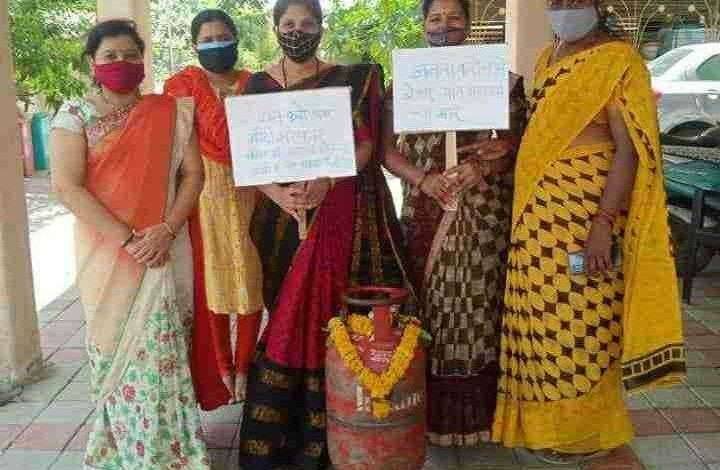 राष्ट्रवादी काँग्रेस महिलांकडून गॅसदर वाढी विरोधात आंदोलन