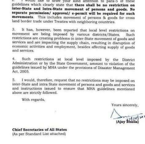 आता केंद्रीय गृहसचिव अजय भल्ला यांनी देशातील सर्व राज्यांच्या मुख्य सचिवांना याबाबत पत्र लिहून त्याची अंमलबजावणी करण्याचे आदेश दिले आहेत. एवढं सांगून देखील कुणी प्रवासावर बंधनं आणली तर गृहखात्याने आखून दिलेल्या मार्गदर्शक तत्वांची पायमल्ली समजली जाईल, असेही भल्ला यांनी म्हटले आहे.