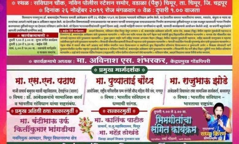 २६ नोव्हेंबर रोजी चिमुरात संविधान सन्मान दिन समारोह आयोजित