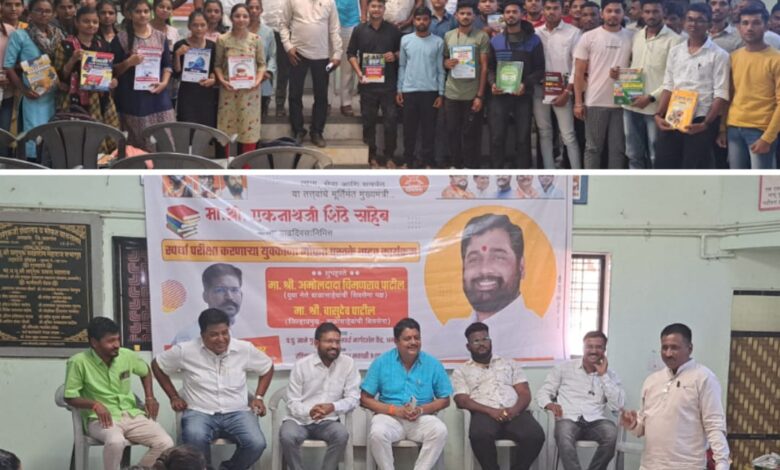 बाळासाहेबांची शिवसेना पक्ष (तालुका अमळनेर )यांच्या वतीने एकनाथजी शिंदे साहेबांच्या वाढदिवसानिमित्त पू.सानेगुरुजी मोफत स्पर्धा परीक्षा मार्गदर्शन केंद्र अमळनेर येथे मोफत स्पर्धा परीक्षा पुस्तके वाटप कार्यक्रम संपन्न