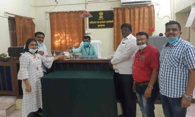 तालुक्यातील पूर्णाड येथील महिला सरपंच प्राध्यापिका मनीषा देशमुख यांनी त्यांचे पती संदीप दिनकरराव देशमुख यांच्या वाढदिवसानिमित्त होणाऱ्या खर्चाला फाटा देत तोच पैसा मुक्ताईनगर येथील जिल्हा रुग्णालयात मध्ये अत्याधुनिक कोविड कक्ष तसेच व्हेंटिलेटर आणि ऑक्सिजन युक्त तयार होत असलेल्या कक्षासाठी आर्थिक मदत केली असून तहसीलदार शाम वाडकर यांच्याकडे हा धनादेश सुपूर्द करण्यात आला.धनादेश देताना प्राध्यापिका मनीषा देशमुख यांच्यासमवेत कृषी उत्पन्न बाजार समितीचे सभापती निवृत्ती पाटील, संदीपराव देशमुख, विनायक वाडेकर, भुषण पाटील ,अभयसिंग देशमुख हे उपस्थित होते.