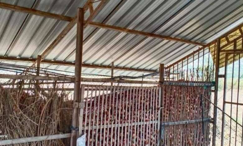 छाया – (महेश शिरोरे खामखेडा ) खामखेडा येथिल कांदा उत्पादक शेतकरी कारभारी बाबुराव शेवाळे यांच्या याच चाळीतून कांद्याची चोरी झाली