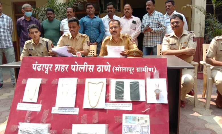पंढरपूर शहर पोलिसांनी विविध गुन्हे उघडकीस आणून केली आरोपींना अटक.