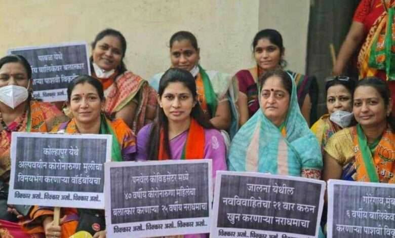 महिलांच्या संरक्षणात अपयशी ठरलेल्या महाविकास आघाडी सरकारचा जळगावात भाजपातर्फे जाहीर निषेध