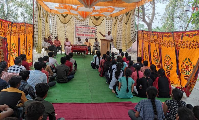 फोटोत विद्यार्थ्यांना मार्गदर्शन करतांना दिलशाद खान सर, व्यासपीठावर प्रा.गोपाळ महाजन, प्रा.डॉ.जे.पी.नेहेते, प्रा.डॉ.डी.बी.पाटील, प्रा.डॉ.सौ.रेखा पाटील, ग्रामसेवक प्रकाश तायडे, प्रा.दिलीप सोनवणे, उपसरपंच विक्रम तायडे