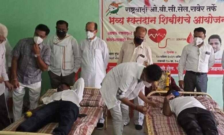 रावेर राष्ट्रवादी काँग्रेस पक्षाच्या ओबीसी सेल तर्फे रक्तदान शिबीर संपन्न.