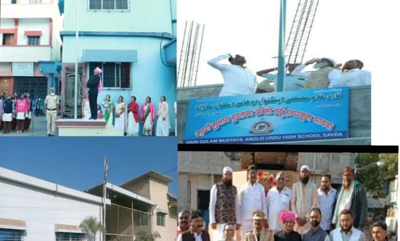 सावदा :- जळगांव जिल्ह्यातील रावेर तालुक्यात असलेल्या सावदा येथे कारी गुलाम मुस्तफा अँग्लो उर्दू हायस्कूल,डायमंड इंग्लिश मिडीयम शाळा, श्री.आ.ग.हायस्कूल,नाना साहेब विष्णू हरी कन्या शाळा,न.पा.उर्दू मुला-मुलींची शाळा व मराठी न.पा मुला-मुलींची शाळा सह नगरपालिका,पोलीस स्टेशन,वीज वितरण कार्यालय,सार्वजनिक बांधकाम विभागा,शहीद अब्दुल हमिद स्मार्क इत्यादी ठिकाणी संबंधित मान्यवरांच्या उपस्थितीमध्ये ध्वजारोहण करून प्रजासत्ताक दिवस मोठ्या उत्साहाने साजरा करण्यात आला.