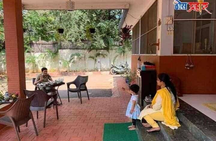 पुणे : कोरोना विषाणू च्या संकटाचा मुकाबला करण्यासाठी अहोरात्र पुणे जिल्ह्यात लक्ष ठेवून असलेले एक कर्तव्यदक्ष अधीकारी पुणे ग्रामीण पोलिस अधीक्षक संदीप पाटील यांचा भावूक करणारा कुटुंबासमवेत चा फोटो व्हायरल झाला आहे . स्वागतकक्ष पुणे जिल्ह्यातील सर्व पोलिस बांधवांचे कुटुंबप्रमुख म्हणून जबाबदारी त्यांच्या खांद्यावर आहे.असे असताना स्वतः च्या कुटुंबाला सध्या अशा प्रकारे भेटत असून सोशल डिस्टंन्सिंग चा नियम ते स्वतः पाळत आहे.कर्तव्य पार पाडत असताना यापेक्षा वेगळा त्याग देणारा संदेश कोणताच नसेल.