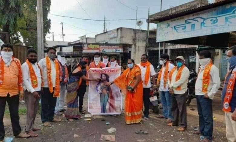 शिवसेना व युवासेना यांनी माननीय आमदार आाबासाहेब चिमणराव पाटील यांच्या मार्गदर्शनाखाली व बाजार समिती सभापती दादासो, अमोल चिमणराव पाटील,आदेशाने अभिनेत्री कंगना राणावतचा तीव्र निषेध करण्यात आला. यावेळी शिवसेना तालुकाप्रमुख आर,बी,पाटील सर शहर प्रमुख अशोक मराठे मार्केट कमिटी उपसभापती मा,मधुकर पाटील शेतकीसंघचे चेअरमन डॉ,राजेंद्र पाटील शिवसेना महिला शहर संघटीका जयश्री दिलीप चौधरी शहर उपसंघटीका कविता दीपक शिंपी, उपतालुकाप्रमुख दादा पाटील, युवासेना उपतालुका प्रमुख समाधान मगर युवा सेना शहर प्रमुख आबा महाजन उपशहर प्रमुख भूषण भोई, युवासेना उपशहर प्रमुख सावन शिंपी, शिवसैनिक संतोष महाजन, मनोज चौधरी, शाखाप्रमुख प्रशांत पाटील दिलीप चौधरी, दीपक शिंपी, व शिवसैनिक उपस्थित होते,