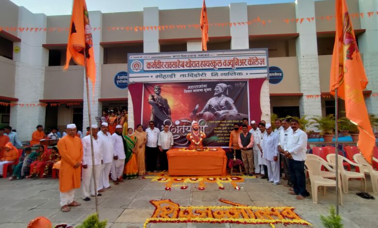 मविप्र संचलित कर्मवीर रावसाहेब थोरात व ज्युनिअर काॅलेज मोहाडी विद्यालयात छत्रपती शिवाजी महाराज यांची जयंती उत्साहात साजरी करण्यात आली .