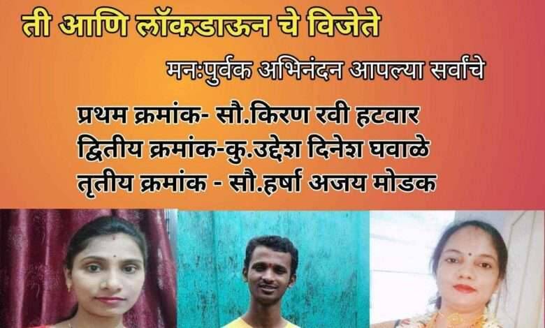 ती आणि लाॅकडाऊन” या स्पर्धेचे विजेते पुढीलप्रमाणे