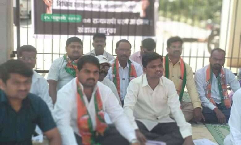 खंडाळा तहसीलदार कार्यालय समोर भाजपाच्या वतीने महा विकास आघाडी चा निषेध करण्यासाठी धरणे आंदोलन