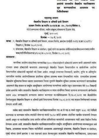 उस्मानाबाद, शासकीय वैद्यकीय महाविद्यालयात ४४८ पदे भरण्यास राज्य शासनाची मान्यता