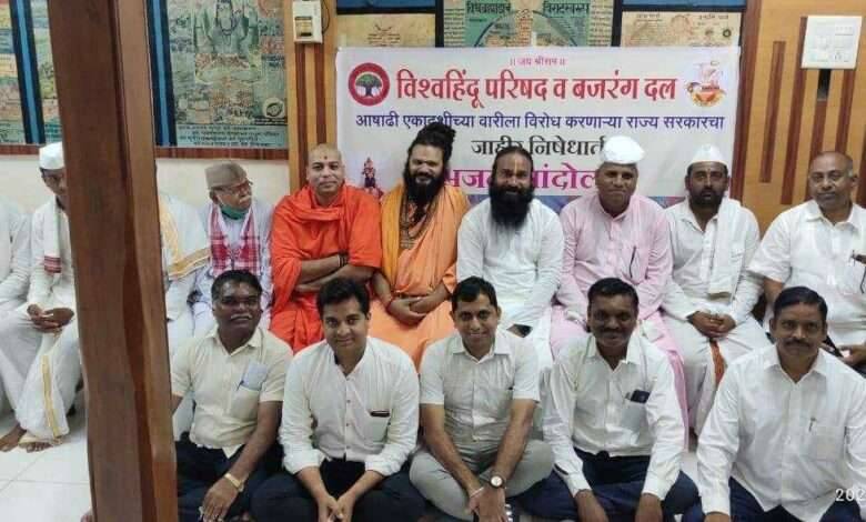 दिगंबर महाराज मठ पंढरपूरचे अध्यक्ष नरेंद्र नारखेडे यांनी वारकऱ्यांवर शासनाने वारी बंद करून अपमान केला आहे. गेल्या एकादशीला १८० वारकऱ्यांना २००० पोलीस बंदोबस्तासाठी देण्यात आले इतिहासात असे पहिल्यांदा घडले. ज्याच्या हाती टाळ मृदंग त्यांच्यावर नजर ठेवण्यासाठी दोन हजार पोलीस बंदोबस्त. उद्धवा अजब तुझे सरकार असे म्हणण्याची वेळ आली आहे. आम्ही वारकरी याचा निषेध करतो. सर्व धर्माच्या संतांनी शासनाचा निषेध व्यक्त करून येत्या १७ जुलैला शांततेच्या मार्गाने भजन आंदोलन करण्याचे ठरविले आहे. शासनाने या आंदोलना आधीच वारकऱ्यांच्या तसेच महाराष्ट्रातील तमाम हिंदुंच्या श्रद्धेचा भाग असलेल्या वारीला परवानगी देऊन मार्ग काढावा असे आवाहन उपस्थित संतांनी केले आहे.