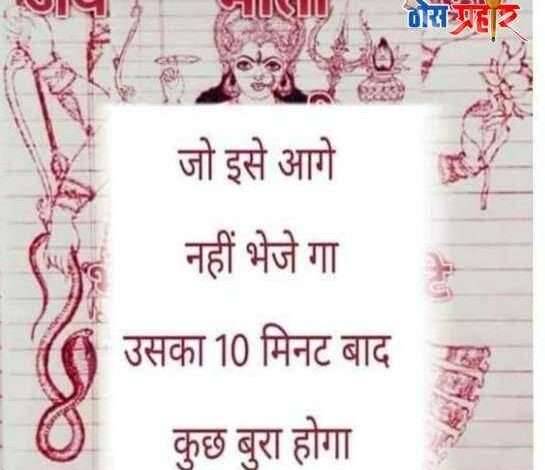 अमळनेर प्रतिनिधी: आजूबाजूच्या परिसरातील,राज्यातील,जिल्ह्यातील अनेक भागातून बरेच धुमाकूळ घालणारे मॅसेज मोबाईल व्हाट्सएपच्या वर स येत आहे जसे देवी देवता,नाग देवता हनुमान,बरेच काही आहेत त्यात अजून अनेक अफवा पसरत आहेत पुढील देवत अस्तिका चे भले व नास्तिका चे नाश करण्यासाठी जन्म घेणार आहे.