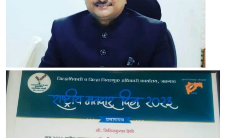 तहसिलचे कार्यकारी दंडाधिकारी तथा तहसिलदार नितीनकुमार देवरे यांना ‘उत्कृष्ट सहाय्यक मतदार नोंदणी अधिकारी’ म्हणून सलग दुसऱ्यांदा २५ जानेवारी २०२३ रोजी राष्ट्रीय मतदार दिनी सन्मानित करण्यात आले. सन २०२२ मध्ये जळगांव ग्रामीण विधानसभा मतदार संघातील मतदार याद्यांचे अद्ययावतीकरण, तक्रारींचे निवारण, राबविलेले नाविन्यपूर्ण उपक्रम या विशेष कार्याबद्दल नितीनकुमार देवरे यांना उत्कृष्ट सहाय्यक मतदार नोंदणी अधिकारी म्हणून मागील वर्षी आणि या वर्षी देखील सलग दुसऱ्यांदा गौरविण्यात आले. जिल्हाधिकारी तथा जिल्हा निवडणूक अधिकारी यांचे कार्यालय जळगाव यांच्याकडून आयोजित सन्मान सोहळा कला, विज्ञान आणि पु.ओ.नाहटा वाणिज्य महाविद्यालय भुसावळ येथे संपन्न झाला.