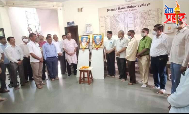 फैजपूर : सद्यपरिस्थितीत देशाची व जगाची वाटचाल विध्वंसक व नकारात्मक दिशेला होत असताना ज्या भारतमातेच्या सपूतांनी सर्वस्वाचा त्याग केला त्यांच्या आचार, विचार व संस्कारांचे आचरण तरुणवर्गाने करावे. महात्मा गांधी हे व्यक्ती नसून विचार आहेत जे कधीही नष्ट होणार नाहीत यासोबत लालबहादूर शास्त्री यांच्यासारखे करारी, धाडसी व सत्तालालसा नसणारे नेते खऱ्या अर्थाने समाजाला प्रेरक आहेत असे गौरवोद्गार पदार्थविज्ञान विभाग प्रमुख व नेहरू अध्ययन केंद्राचे समन्वयक डॉ सतीश चौधरी यांनी व्यक्त केले. ते तापी परिसर विद्या मंडळ संचलित धनाजी नाना महाविद्यालयाच्या महात्मा गांधी अध्ययन व संशोधन केंद्र आणि राष्ट्रीय सण व उत्सव समिती यांच्या संयुक्त विद्यमाने आयोजित अहिंसा दिवसाच्या औचित्याने राष्ट्रपिता महात्मा गांधी व लाल बहादूर शास्त्री यांच्या जयंतीनिमित्त आयोजित अभिवादन सभेत बोलत होते. यावेळी धनाजी नाना महाविद्यालयाचे प्राचार्य डॉ पी आर चौधरी व श्री शिरीषदादा मधुकराव चौधरी समाजकार्य महाविद्यालय, जळगाव चे प्राचार्य डॉ. वाघुळदे यांच्या शुभहस्ते महापुरुषांच्या प्रतिमेस माल्यार्पण करण्यात आले. याप्रसंगी डॉक्टर सतीश चौधरी यांनी दोन्ही महापुरुषांच्या एकूणच व्यक्तिमत्त्वावर प्रकाश झोत टाकत सद्यपरिस्थितीत दोन्ही व्यक्तिमत्त्वांचे समर्पकता ओघवत्या भाषेत उपस्थितांसमोर मांडली. त्यानंतर प्राचार्य डॉ पी आर चौधरी यांनी उपस्थित सर्वांनाच महात्मा गांधी व लालबहादूर शास्त्री यांच्या विचारांचे अध्ययन करून समाजाच्या शेवटच्या घटकापर्यंत त्यांचे खरे विचार पोहोचवून समाज विकासासाठी हातभार लावावा असे आवाहन केले. कोरोना विषाणु प्रादुर्भावाच्या पार्श्वभूमीवर शासन नियमांच्या अटींचे काटेकोर पालन करण्यात आले. कार्यक्रमाचे सूत्रसंचालन लेफ्टनंट डॉ राजेंद्र राजपूत यांनी केले तर उपप्राचार्य प्रा अनिल सरोदे, महात्मा गांधी अध्ययन व संशोधन केंद्राचे समन्वयक तथा इंग्रजी विभाग प्रमुख डॉ जगदीश पाटील, राष्ट्रीय सण व उत्सव समितीचे प्रमुख डॉ आय पी ठाकूर, डॉ आर पी महाजन, प्रा एम एन राणे, कनिष्ठ महाविद्यालयाच्या पर्यवेक्षिका प्रा वंदना बोरोले, डॉ ए के पाटील, प्रा आर पी झोपे, प्रा डी आर तायडे, डॉ जी एस मारतळे, डॉ रवी केसुर, डॉ हरीश तळेले, ग्रंथपाल प्रा आई जी गायकवाड, श्री राजेंद्र तायडे, श्री आर एस सावकारे, श्री गुलाब वाघोदे, श्री सिद्धार्थ तायडे, श्री शेखर महाजन, श्री चेतन इंगळे आदी मान्यवर उपस्थित होते.