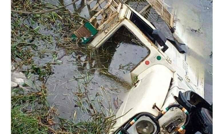 गोदावरी नदी पात्रात वऱ्हाडाची गाडी पुलावरून कोसळल्याने दोघांचा मृत्यू तर आठ जण जखमी,नांदुरमध्यमेश्वर येथे झाला अपघात.