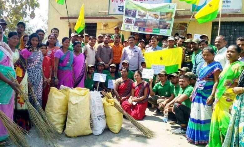 स्वच्छ भारत मिशन अभियानांतर्गत चांपा येथे प्लास्टिक निर्मूलनासाठी महाश्रमदान