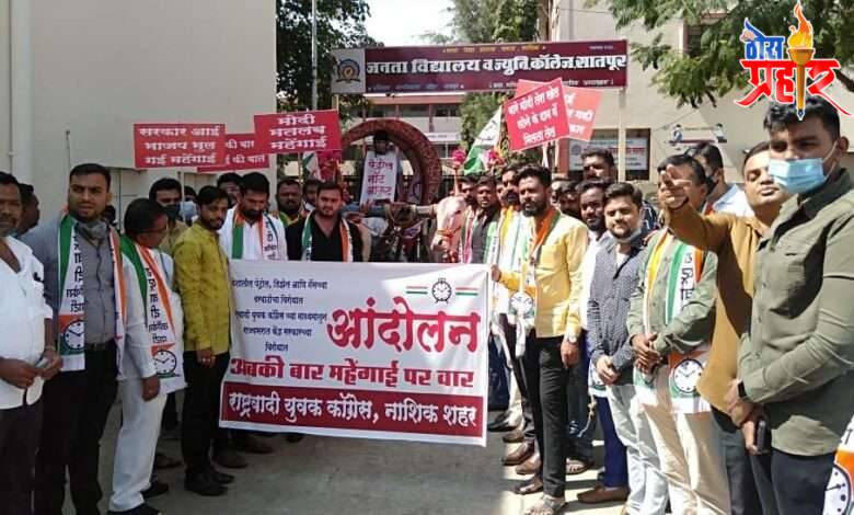 यावेळी बोलतांना युवक शहराध्यक्ष अंबादास खैरे म्हणाले की, गेल्या पंधरा दिवसात सातत्याने पेट्रोल डीझेलची दरवाढ कायम असून नाशिकमध्ये आज पेट्रोलचा ११२.४६ तर डीझेल १०१.६५ रुपयांवर पोहचले आहे. पेट्रोल डीझेलच्या दरवाढीचा परिणाम शेतकरी व सर्वसामान्य नागरिकांना मोठ्या प्रमाणात परिणाम होत आहे. सर्वसामान्य नागरिकाच्या कुटुंबाचे बजेट यामुळे संपूर्णपणे कोलमडून गेलेले आहे. याबाबत सातत्याने आम्ही केंद्र सरकारकडे याबाबत मागणी करत आहोत. पाठपुरावा देखील करण्यात येत आहे. तरी देखील पेट्रोल डीझेलची दरवाढ थांबत नसून सर्व सामान्य नागरिक अडचणीत सापडला असल्याचे त्यांनी म्हटले आहे.