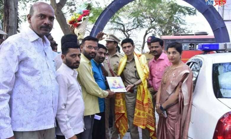 फोटो . पुणे ग्रामीण चे जिल्हा पोलिस अधीक्षक संदीप पाटील यांचा स्वामी समर्थांची प्रतिमा व शाल देऊन सन्मान करताना खबर सबसे तेज वालचंदनगर ग्रुपचे कार्यकर्ते.
