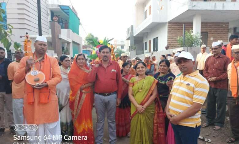 नंतर संत गजानन महाराज मंदीरापासून शिस्तबद्ध पद्धतीने वाजतगाजत पायी वारी निघाली.रस्त्यावर दोन्ही बाजूंना महीला वर्गाने रांगोळी काढून वातावरण भक्तीमय झाले होते.संत गजानन महाराज यांच्या गाण्यावर महीला व पुरुष नाचत आपला आनंद व्यक्त केला.