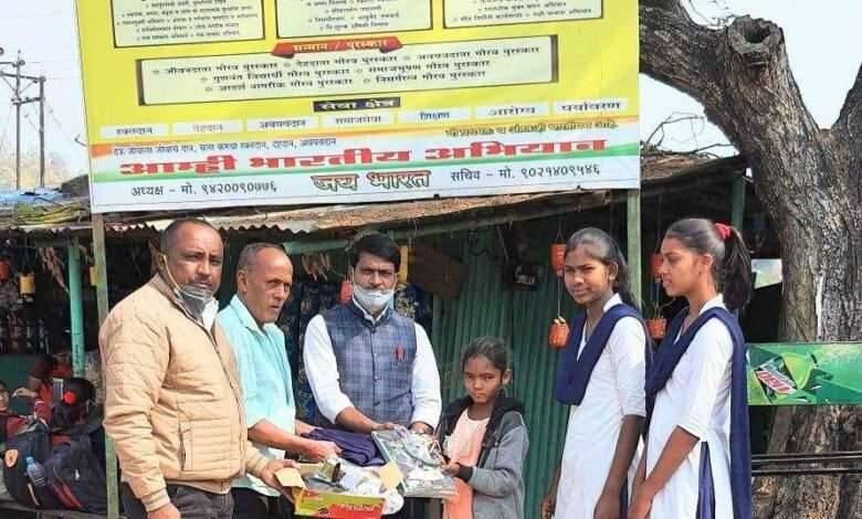 कोल्हापूर : पारशिवनी तालुक्यातील नेऊरवाडा येथील सहावीत शिकणाऱ्या अस्मिता राजेश गोळंगेला आम्ही भारतीय परिवार द्वारा माणुसकीचा हात देत शैक्षणिक साहित्य व गणवेश प्रदान करण्यात आले. शासकीय आदेशान्वये २७ जानेवारीपासून ६ वी ते ८ वीची शाळा सुरू झाली. मुले शाळेत जाऊ लागली. पण कोरोनाने साऱ्यांचे कंबरडे मोडले. ग्रामीण भागातील पालकांची अवस्था तर फारच बिकट झाली. त्यामुळे अनेक मुलांकडे शैक्षणिक साहित्याचा अभाव असल्याचे चित्र दिसून येत आहे. अस्मिता सुध्दा त्यातलीच एक. मोलमजुरी करणाऱ्या मायबापाची निरागस लेक. ती शिकण्यासाठी नेऊरवाडा येथून दररोज नवेगाव खैरीला सायकलने येते पण पायात शूज नाही, गणवेश नाही अशी अवस्था.