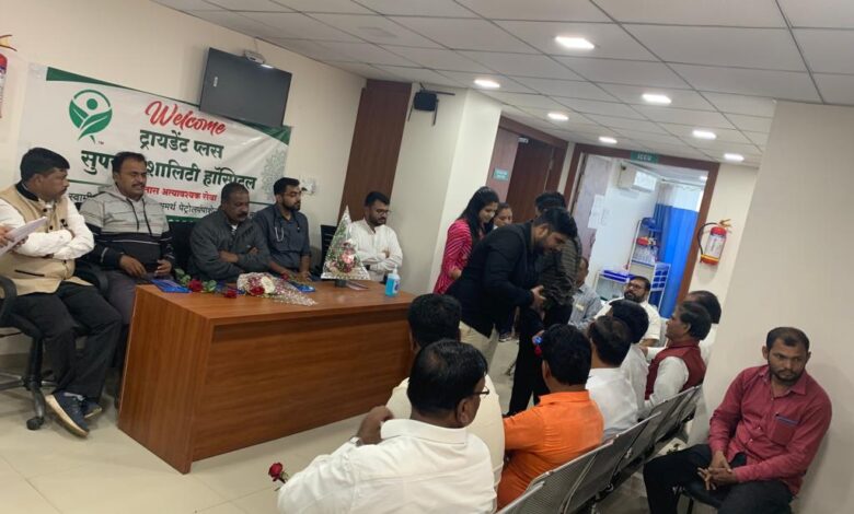 टायट्रेंडप्लस सुपर स्पेशलिटी हॉस्पिटलच्या वतीने आज पत्रकार दिनाच्या निमित्ताने या हॉस्पिटलच्या वतीने तालुक्यातील सर्व पत्रकारांचे ईसीजी रक्त बीपी व इतर शारीरिक तपासणी करण्यात आली या यावेळी ट्रायडेंट हॉस्पिटलच्या वतीने डॉक्टर विलास देशमुख डॉक्टर दिपक जाधव एम डी मेडिसिन डॉ दर्शन जाधव डॉक्टर ईशा शहा डॉक्टर ईशान निकम डॉक्टर सिद्धेश जोशी डॉक्टर ऋषिकेश शिंपी आदींस ह सुपर स्पेशलिटी हॉस्पिटल मधील सर्व नर्सिंग कर्मचारी यांनी तालुक्यातील पत्रकारांचे मोफत तपासणी केली तसेच हे हॉस्पिटल सर्वसामान्य नागरिकांसाठी सगळ्या सुख सुविधा डायलेसिस सिटीस्कॅन आय सी यु एस सर्व प्रकारच्या आजारांचे निराकरण करण्यासाठी सुसज्ज अशी इमारत दिंडोरी कळवण रोड लगत व ॲम्बुलन्स सुविधांसह सज्ज झाले असून या ठिकाणी मुख्यमंत्री सहाय्यता निधी मार्फत आवश्यक असणारे कागदपत्रे सुविधा तसेच सर्व मेडिक्लेम स्वीकारले जाणार असून रुग्णांना अतिशय चांगल्या प्रकारची सेवा देण्याचे अभिवचन सर्व डॉक्टर बंधूंनी दिले असून आपण सर्वसामान्य गोरगरीब आदिवासी भागातील तसेच वेळप्रसंगी काही दुःखद प्रसंग होऊ नये परंतु एक्सीडेंट सारख्या घटना घडल्या तरी पेशंटला योग्य त्या प्रकारची ट्रीटमेंट मिळण्यासाठी सर्व सुविधांची मांडणी केली असून जवळपास 70 कॉटेज हॉस्पिटलची निर्मिती या ठिकाणी होत असून 35 कॉटेज जनतेला इलाजासाठी उपलब्ध करून देण्यात आले असून नागरिकांनी या सेवेत लाभ घ्यावा व येथून नाशिक किंवा अन्य ठिकाणी ज्या सुविधा मिळतात त्या सर्व सुविधा देण्यासाठी आम्ही कटिबद्ध असल्याचे अभिवचन सर्व डॉक्टरने एकजुटीने सांगितले यावेळी दिंडोरी तालुका पत्रकार संघाचे संस्थापक अध्यक्ष संतोष कथार सुनील घुमरे भगवान गायकवाड आदींनी या हॉस्पिटलच्या भरभराटीसाठी व पेशंटला योग्य ट्रीटमेंट व योग्य बिले आकारून चांगल्या प्रकारची सेवा आपल्याकडून मिळेल अशी अपेक्षा केली. यावेळी सर्व तालुक्यातील बांधवांचा हॉस्पिटलच्या वतीने छोटीशी भेट देऊन व सर्वांची तपासणी करून स्वागत करण्यात आले यावेळी तालुक्यातील बहुतांश पत्रकार बांधव उपस्थित होते