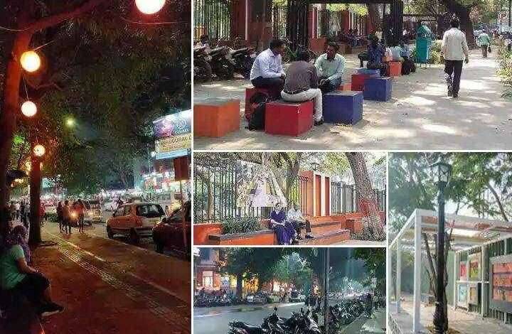 पुण्यातील एफ सी रस्ता, जे एम रस्त्याच्याकडेला लोकांना बसण्यासाठी सोय करण्यात आली आहे. आकर्षक कमानी, रंगीबेरंगी खांब आणि पुरेशी सावली यामुळे अनेक जण या ठिकाणी तासन् तास बसलेले पाहायला मिळतात. पुण्यातील फर्ग्युसन महाविद्यालय रस्ता अर्थात एफ सी रोड आणि त्याला समांतर असलेल्या जंगली महाराज रस्ता अर्थात जे एम रोडवर अशाप्रकारे सौंदर्यीकरण करण्यात आलं आहे.
